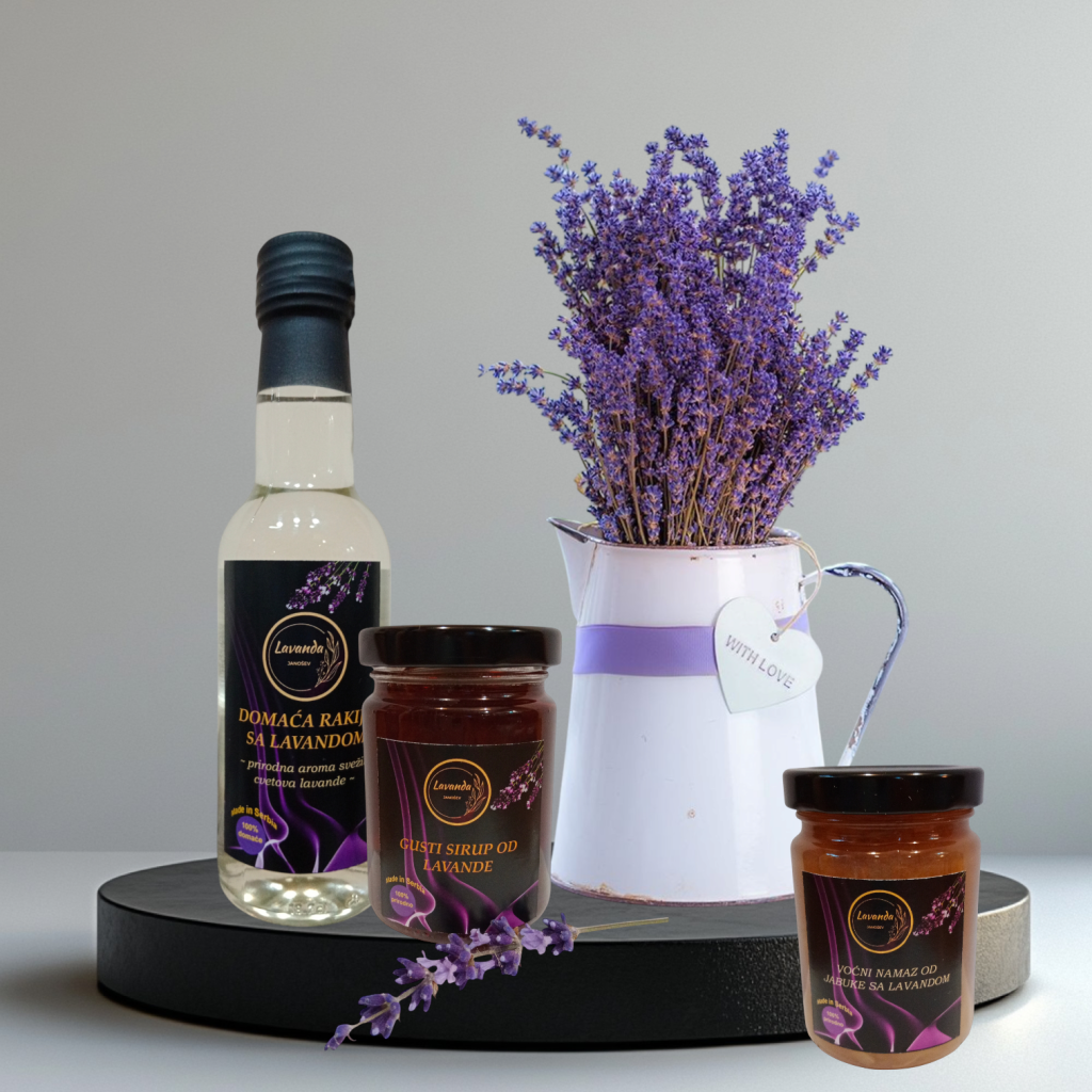 Naša plantaža lavande u Srbiji predstavlja osnovu svih PurplEssence proizvoda – od eteričnih ulja i hidrolata, do kozmetike, wellness proizvoda i autentičnih delicija poput rakije sa lavandom. Svi proizvodi nastaju u malim serijama, uz ručnu obradu i pažljivu kontrolu kvaliteta, bez veštačkih aroma, boja i konzervansa.
