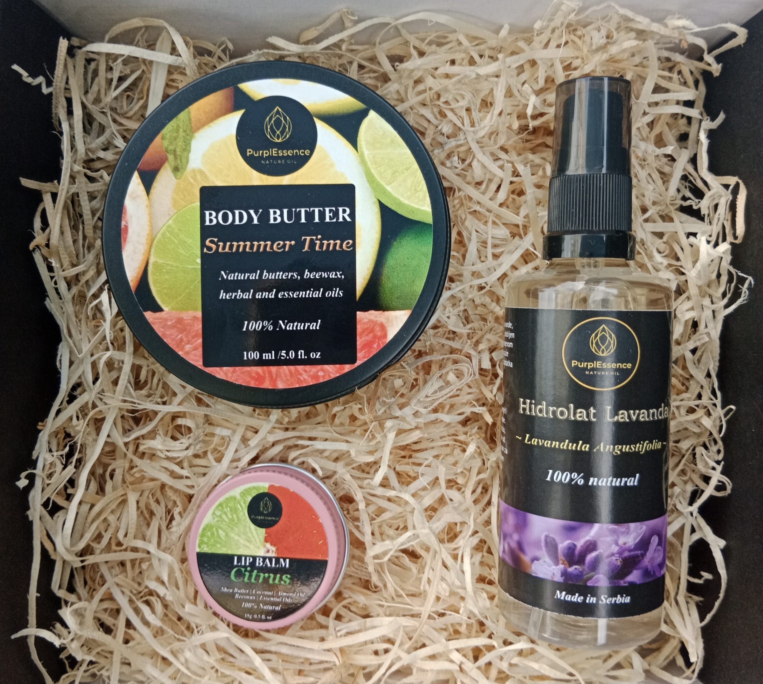 U vremenu instant života i užurbanosti, poklon koji miriše na prirodu i pažnju ima posebnu vrednost. Naš ručno izrađen poklon paket kombinuje tri osnovna proizvoda za potpunu negu tela, bez hemikalija i dodataka. Idealno kao pažljiv znak ljubavi, zahvalnosti ili podrške – ili kao mala svakodnevna čarolija samo za vas.