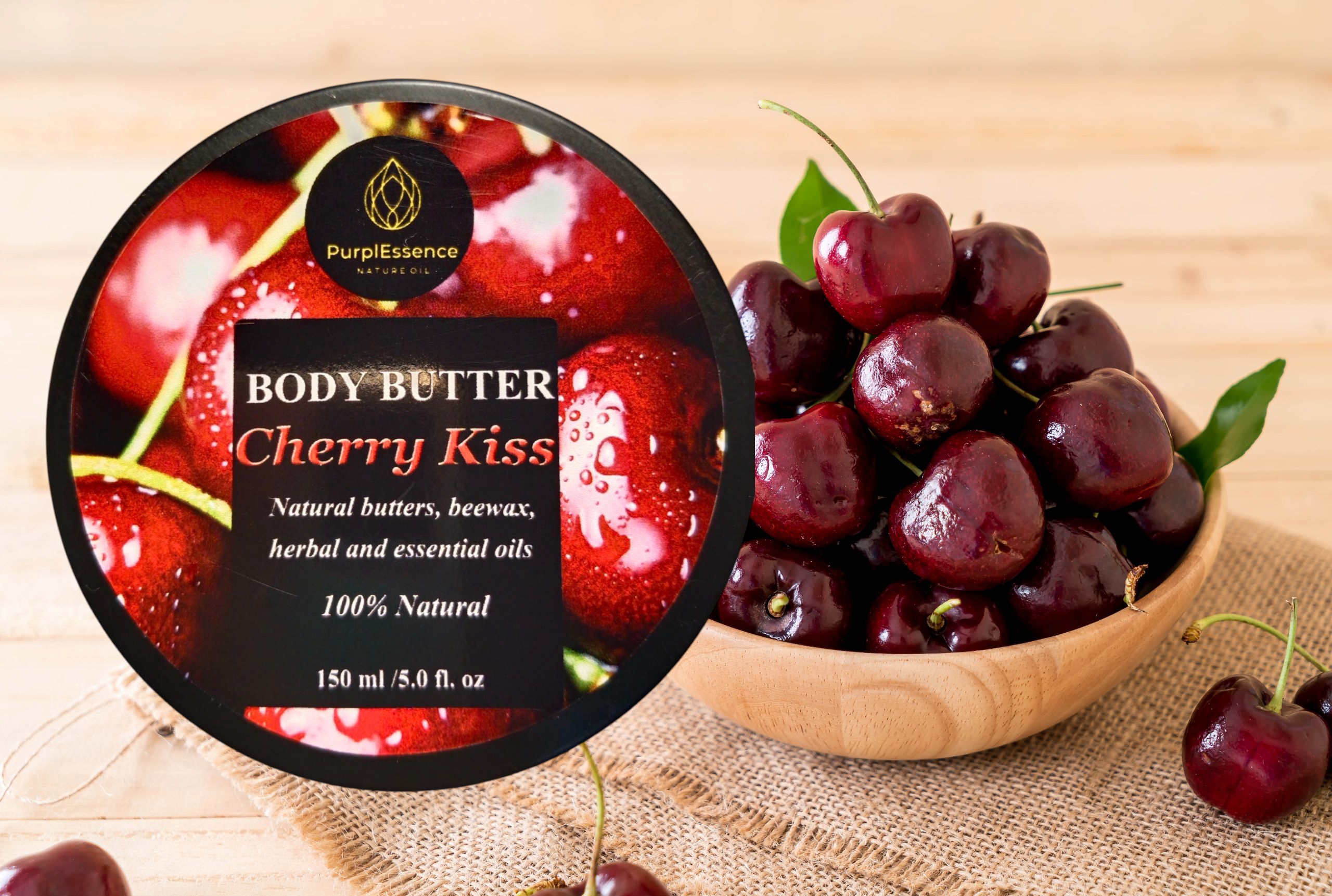 - Eterična ulja višnje i lavande – U kombinaciji s hranljivim biljnim maslacima i uljima, eterična ulja doprinose holističkom osećaju blagostanja i prirodne lepote, za dodatnu negu i aromaterapijski efekat.